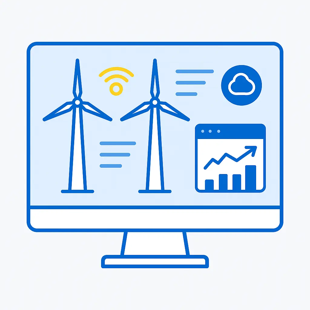 Each wind turbine continuously measures performance indicators such as wind speed, blade pitch, yaw, vibration, and temperature. These readings are captured by embedded IoT sensors and transmitted through on-site controllers.