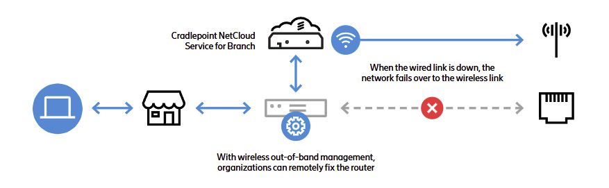 Harness the power of an Ericsson Cradlepoint adapter or router to enhance the reliability of your primary wired router located in a fixed position. This innovative solution not only offers cellular failover but also enables seamless wireless out-of-band management. With smart policies in place, traffic can swiftly reroute through the wireless connection whenever the primary wired link faces interruptions. When the wired connection is back online, the traffic flow effortlessly resumes to normal — often without users or customers even realizing it.